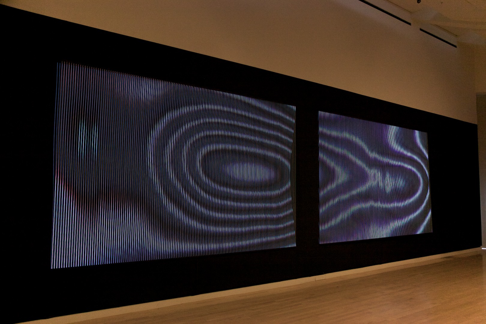 Interactive installation. 31' x 10'. MDF, elastic, video projectors, video cameras, computer, custom software.